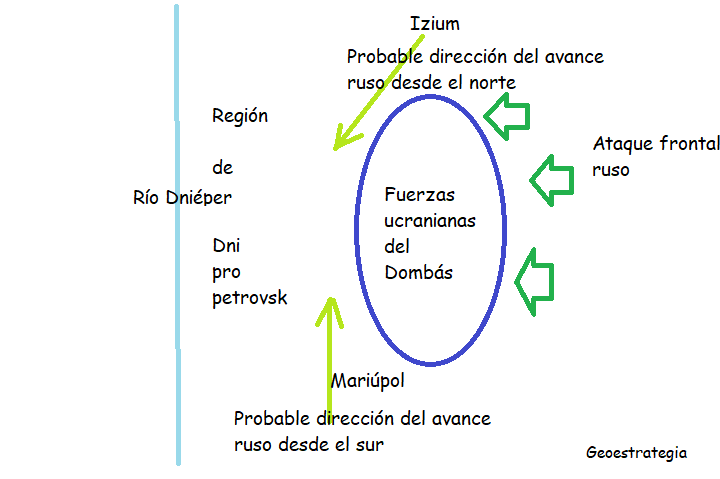 Esquema (no mapa) de las acciones militares en Ucrania - Imagen: Geoestrategia
